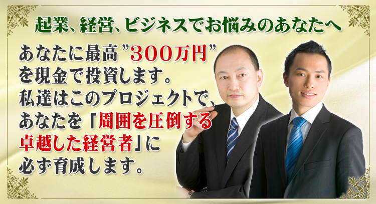 最優秀者に100〜300万円のビジネス資金を実際に投資します。
