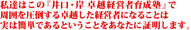私達はこの『井口・岸 卓越経営者育成塾』に絶対の自信を持っているからです。