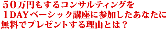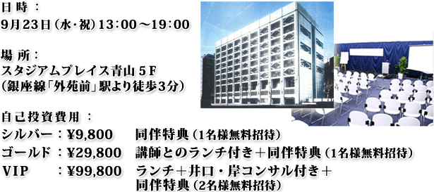 さらに、VIP席にてご参加の方には、コンサルティングを1回無料にてお付けします。