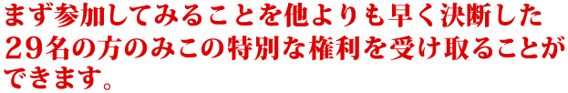 この参加費は私達からあなたへのプレゼントですので今すぐ参加を決断してください。