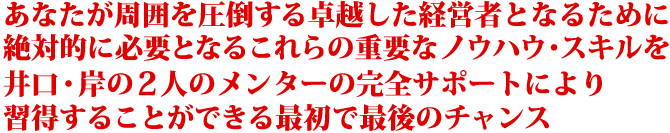 さらに、あなたは『井口・岸 卓越経営者育成塾』にノーリスクで参加することできます。